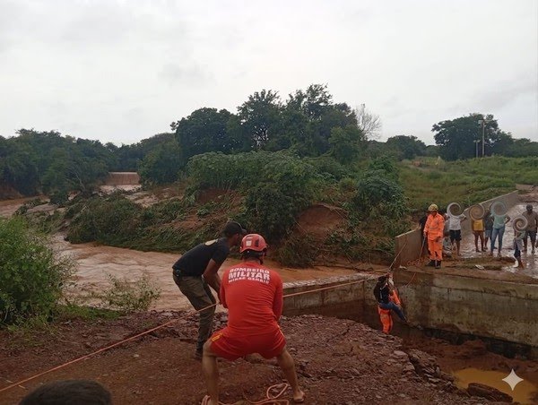 Um dos atendimentos dos bombeiros foi na comunidade de Angical, onde uma ponte que dá acesso ao povoado apresentou desbarrancamento na cabeceira, ficando intransitável e com risco de colapso. As equipes interditaram a área e iniciaram a operação de salvamento para garantir a segurança dos moradores.