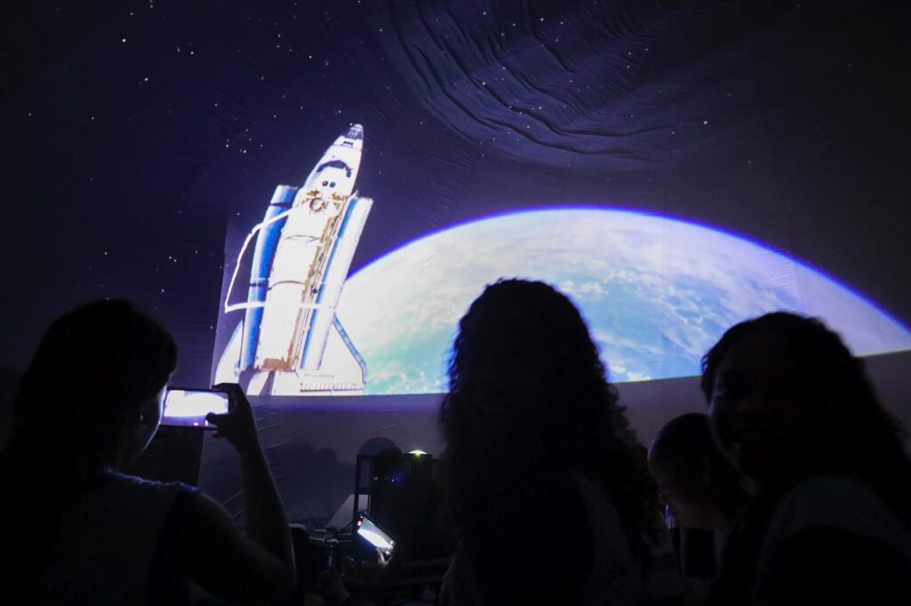 O equipamento permitiu ainda a exibição de conteúdos científicos diversos, favorecendo múltiplos aprendizados por parte das estudantes.