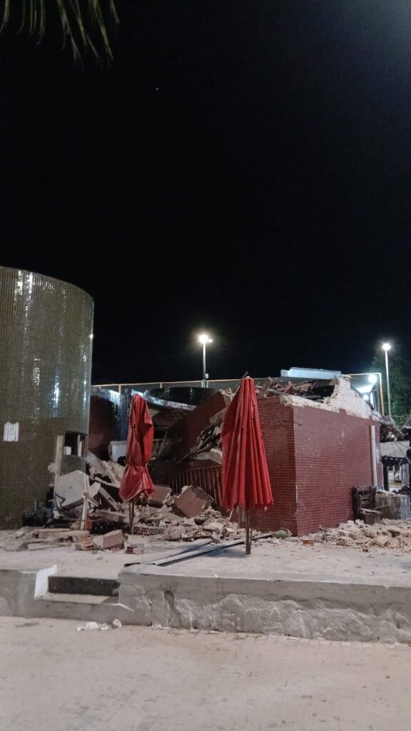 Em Madre de Deus, moradores acordaram assustados com um grande estrondo na madrugada desta terça- feira. 4 barracas de praia foram totalmente destruidas depois de uma forte explosão.
